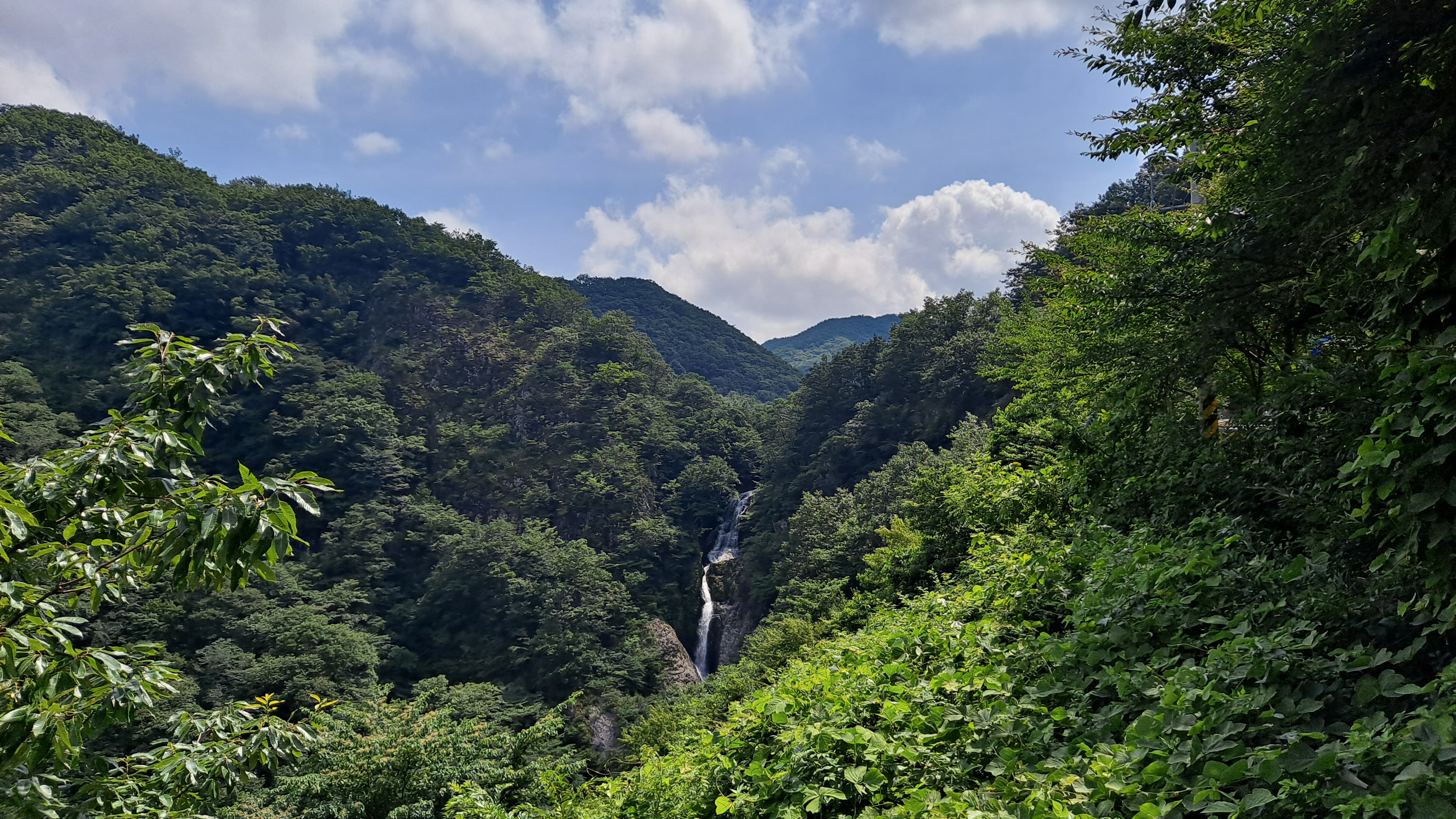 멀리 위봉폭포가 보인다. 폭포의 시원한 물소리를 담아보았습니다.