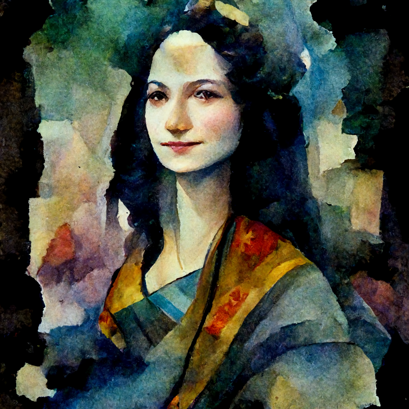 이 그림 역시 동양의 모나리자, 수채화라는 영문 단어를 입력해 미드저니가 표현한 것이다. 유럽인에게 모나리자는 어떤 의미일까? 동양에 모나리자가 있다면, 어떤 모습일까? 인공지능은 그림을 학습하기 이전에 그 그림에 매치된 단어를 학습한다. 그런 단어 없이 어떤 그림이나 형태도 정의할 수 없을테니까. 다빈치에게 모나리자는 어떤 의미였을까? 그가 처음 생각한 모나리자의 의미와 현대인이 생각하는 모나리자의 의미는 같을 수 없다. 그림은 같아도 생각은 변화한다.