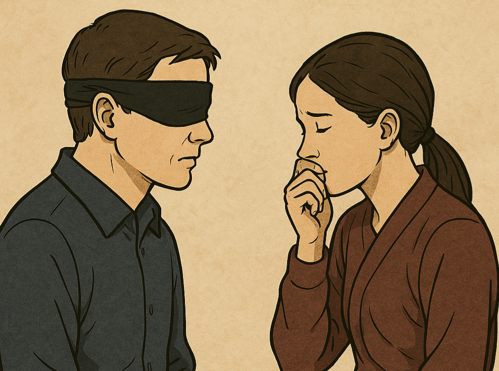 요즘같이 비밀스러운 연애가 많아 보이는 세상에서, 비밀을 말하지 못하는 여자에게 앞을 보지 못하는 남자는 오쟁이를 지고 있는 것과 다를 바 없다. 여자가 원할 때 그 남자는 언제나 그 자리에 있고, 그녀에게 전적으로 의지할 수밖에 없다.